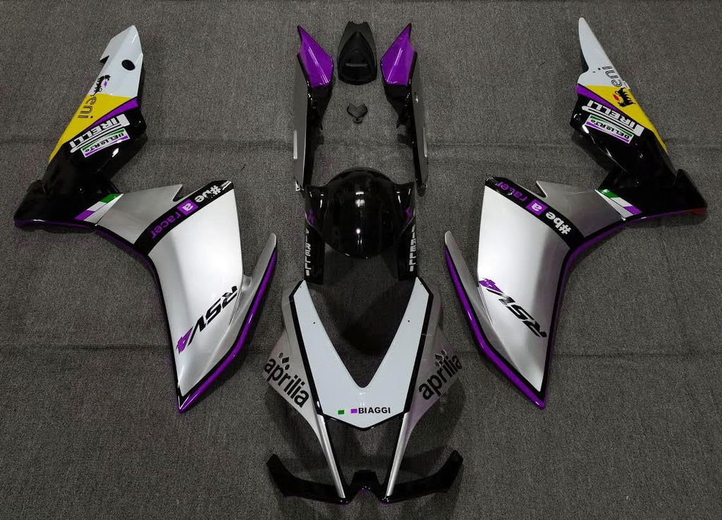 Previous Product Next ProductSilver, Purple, Black Fairing Kit for a Aprilia RSV4 1000 motorcycle for years 2009, 2010, 2011, 2012, 2013, 2014, 2015.