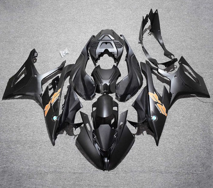 Previous Product Next ProductMatte Black, Orange Fairing Kit for a 2019, 2020, 2021, 2022 BMW S1000RR motorcycle.