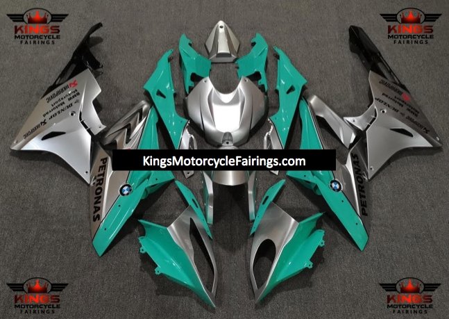 Previous Product Next ProductSilver, Teal and Black Fairing Kit for a 2009, 2010, 2011, 2012, 2013 and 2014 BMW S1000RR motorcycle.