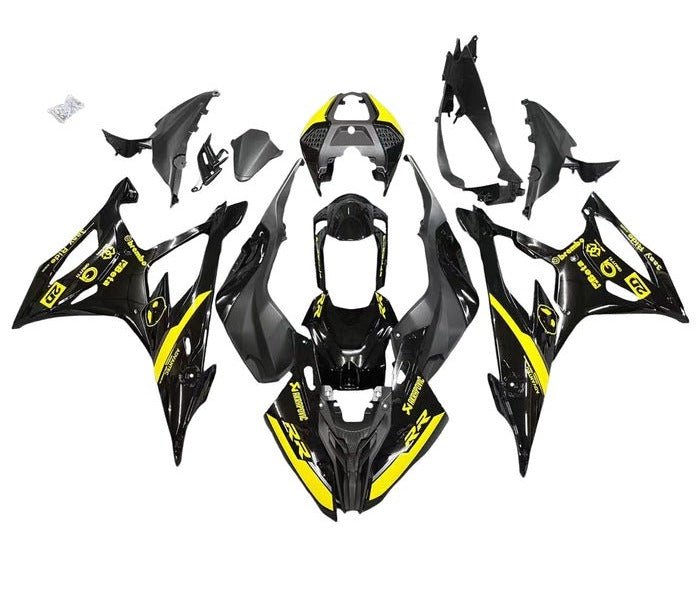 Previous Product Next ProductBlack, Yellow Fairing Kit for a 2019, 2020, 2021, 2022 BMW S1000RR motorcycle.