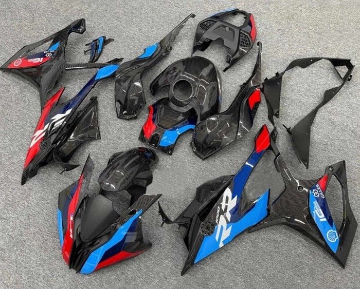 BMW S1000RR (2019-2022) Faux Carbon Fiber, Red, Blue Fairings