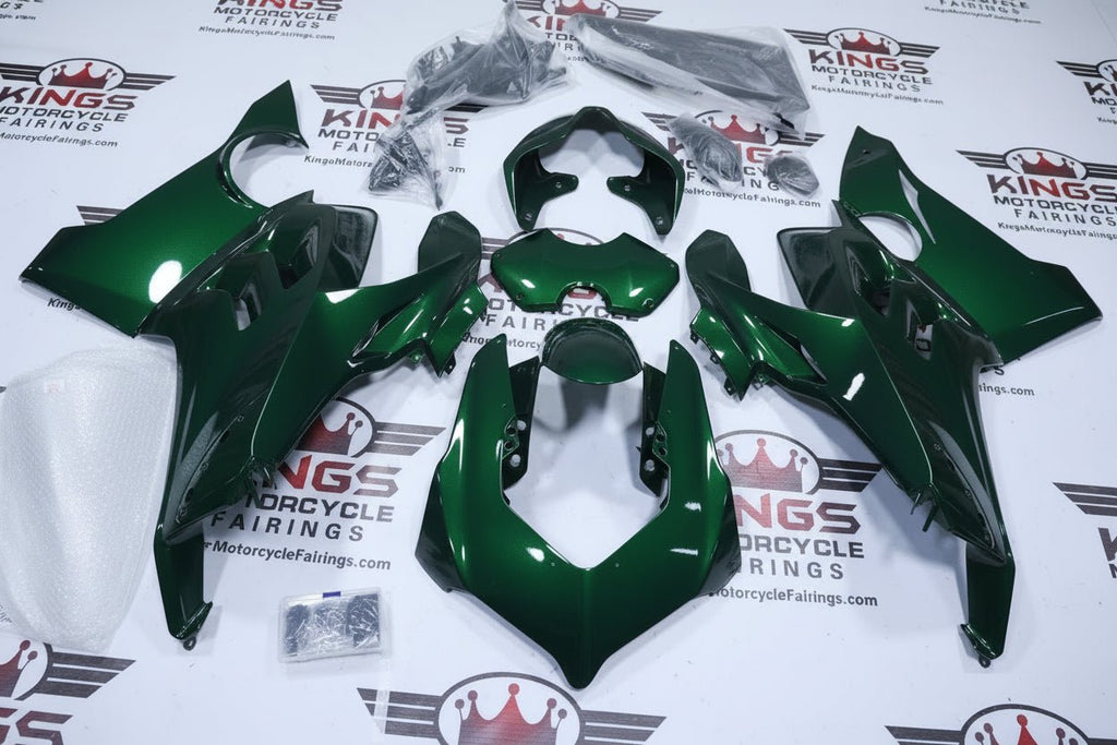 Previous Product Next ProductGreen Fairing Kit for a 2020, 2021 Ducati Panigale V4 motorcycle.