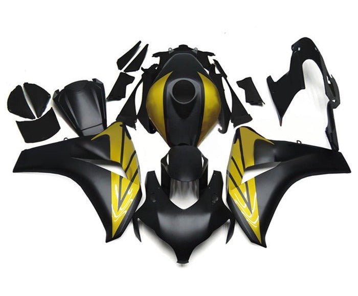 Previous Product Next ProductMatte Black, Gloss Gold Fairing Kit for a 2008, 2009, 2010 & 2011 Honda CBR1000RR motorcycle.