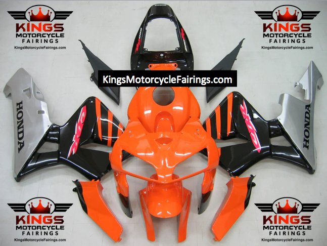 Previous Product Next ProductOrange, Black, Silver Fairing Kit for a 2005, 2006 Honda CBR600RR motorcycle.