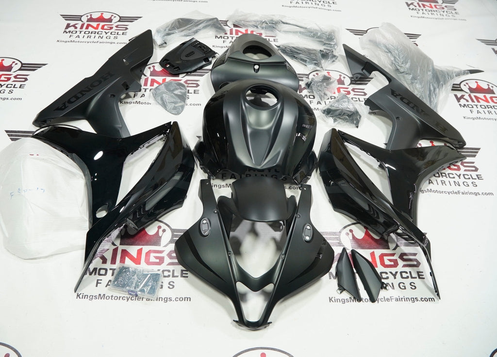 Previous Product Next ProductMatte Black and Black Gloss Fairing Kit for a 2007 and 2008 Honda CBR600RR motorcycle.