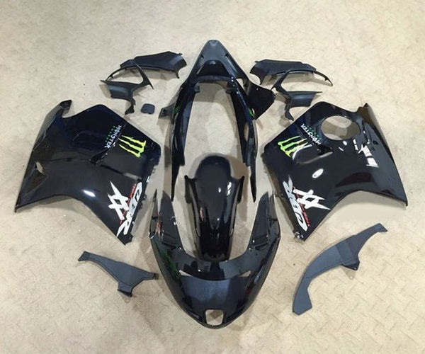 Previous Product Next ProductBlack, Monster Energy Fairing Kit for a 1996, 1997, 1998, 1999, 2000, 2001, 2002, 2003, 2004, 2005, 2006, 2007 Honda CBR1100XX Super Blackbird motorcycle.