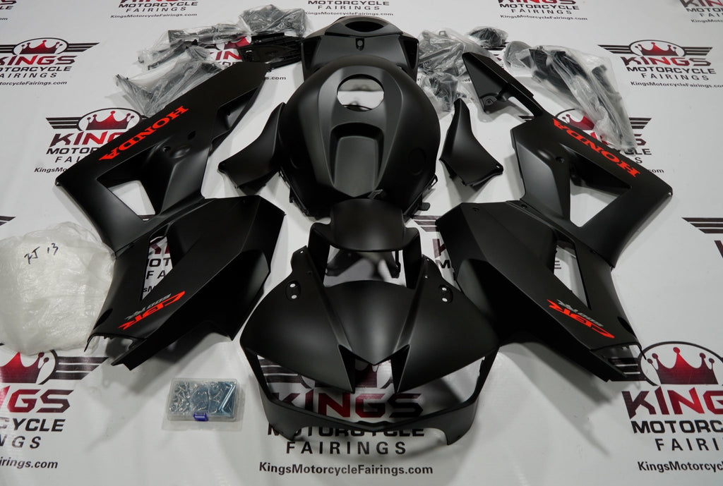 Previous Product Next ProductMatte Black, Red Fairing Kit for a 2024, 2025 Honda CBR600RR motorcycle.
