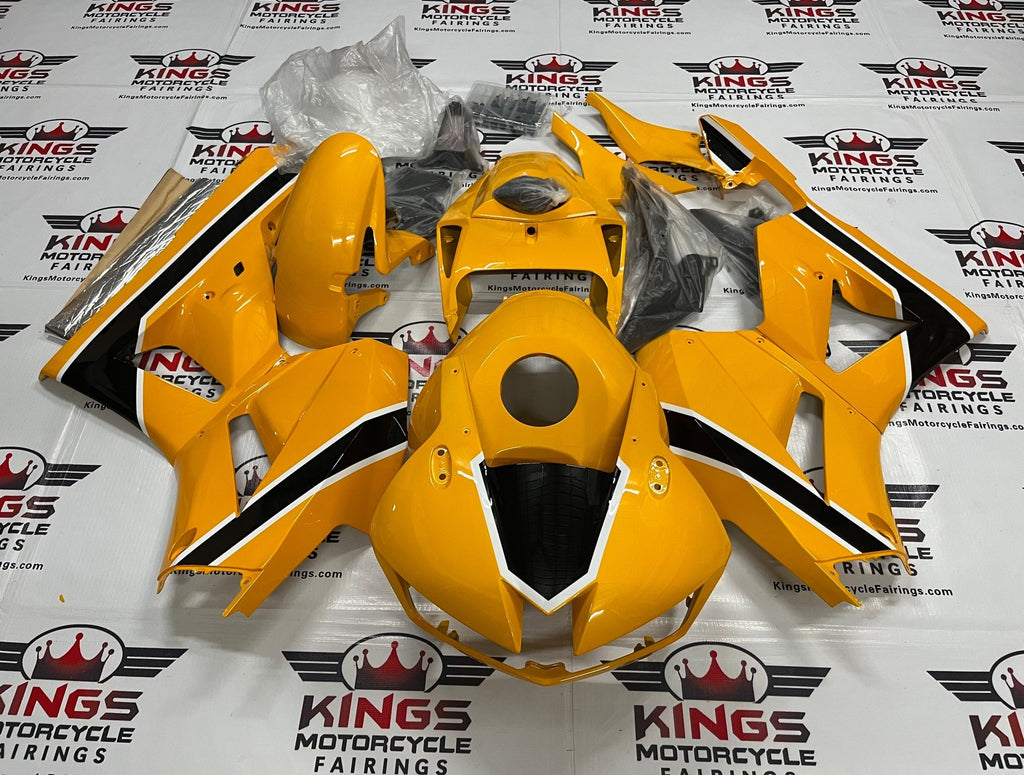 Previous Product Next ProductYellow, Black, White Fairing Kit for a 2024, 2025 Honda CBR600RR motorcycle.