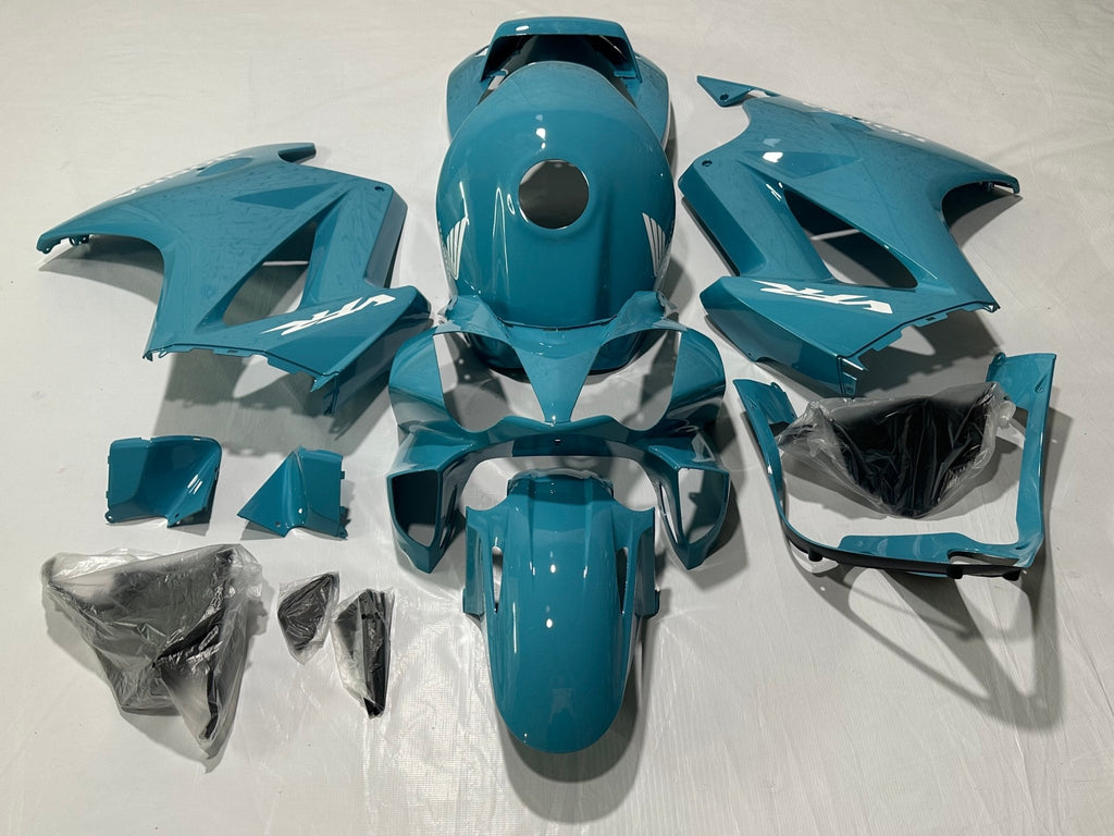Previous Product Next ProductTeal Blue Fairing Kit for a 2002, 2003, 2004, 2005, 2006, 2007, 2008, 2009, 2010, 2011, 2012, 2013 Honda VFR800 motorcycle.