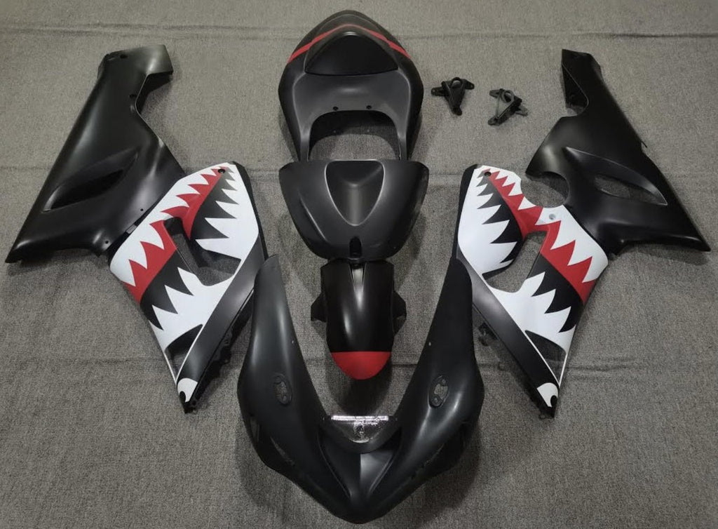 Fairing kit for a Kawasaki ZX6R 636 (2005-2006) Matte Black, White & Red Shark
