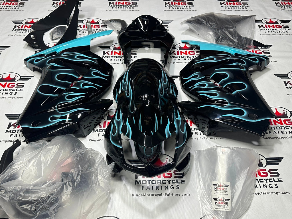 Fairings for Kawasaki Ninja 250R (2008-2013) Black, Sky Blue Flames
