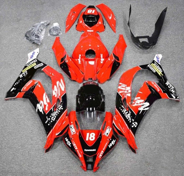 Previous Product Next ProductRed, Black, White #18 Fairing Kit for a 2016, 2017, 2018, 2019 & 2020 Kawasaki Ninja ZX-10R motorcycle.