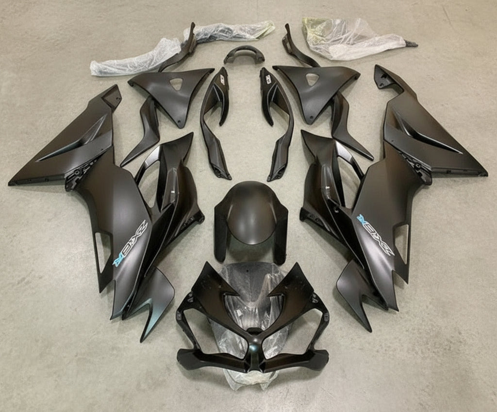 Previous Product Next ProductMatte Black Fairing Kit for a 2019, 2020, 2021, 2022, 2023 Kawasaki Ninja ZX-6R 636 motorcycle.