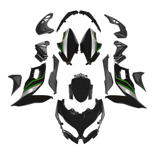Previous Product Next ProductBlack, Green fairing kit for a Kawasaki Versys 650 motorcycle, years 2015, 2016, 2017, 2018, 2019, 2020, 2021.