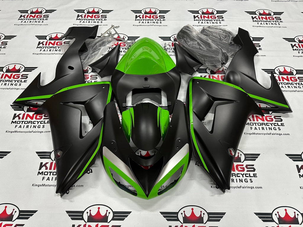 Fairing Kit For A Kawasaki ZX10R (2006-2007) Matte Black, Green Stripe