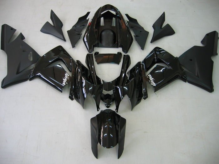 Previous Product Next ProductBlack, Matte Black Fairing Kit for a 2004, 2005 Kawasaki ZX10R motorcycle.