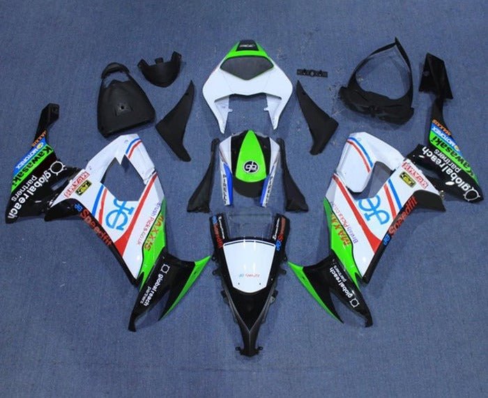 Previous Product Next ProductWhite, Black, Green, Red, Blue Fairing Kit for a 2008, 2009 & 2010 Kawasaki ZX-10R motorcycle.