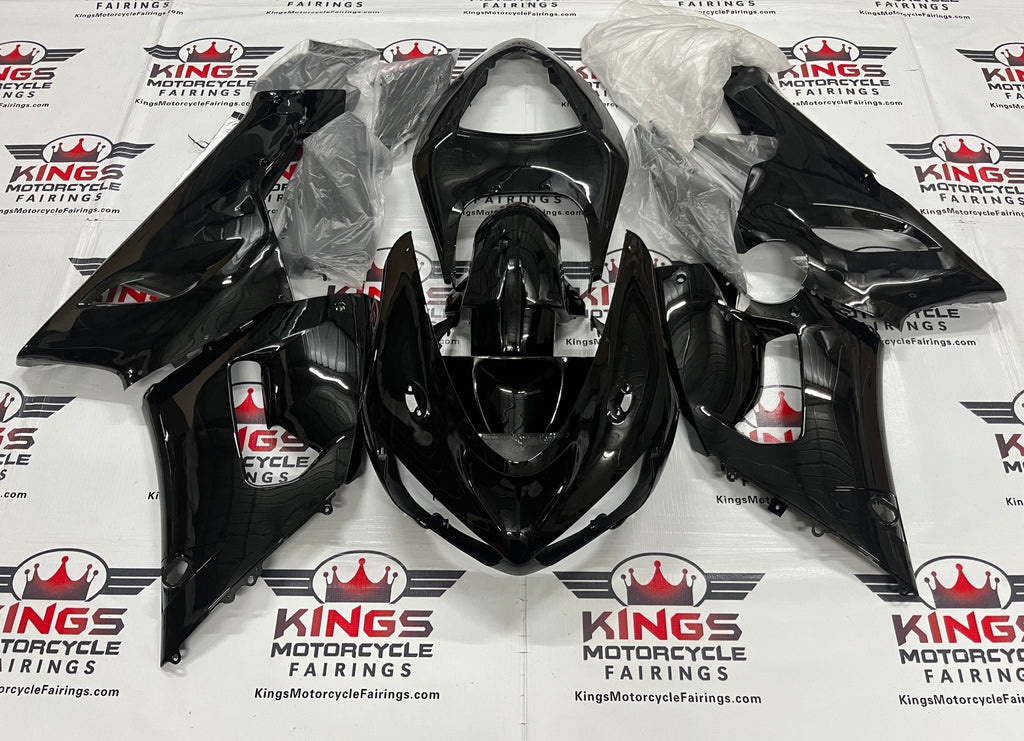 Previous Product Next ProductBlack Fairing Kit for a 2005 & 2006 Kawasaki Ninja ZX-6R 636 motorcycle.