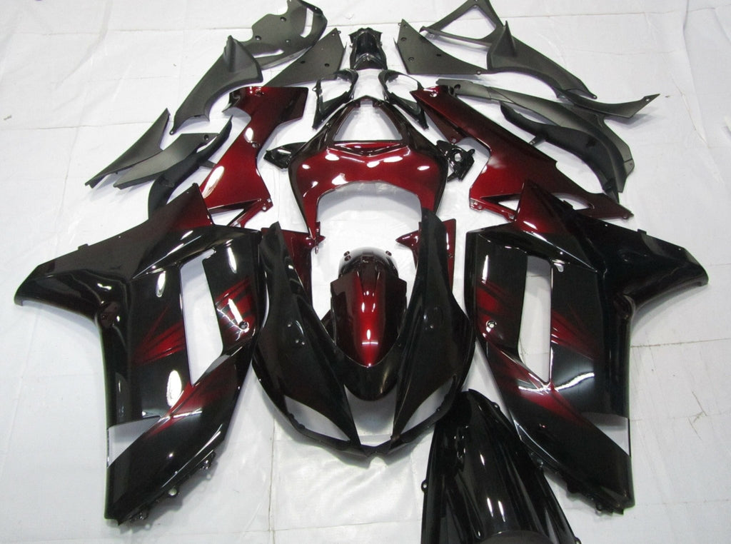 Previous Product Next ProductBlack and Burgundy Red Fairing Kit for a 2007 & 2008 Kawasaki Ninja ZX-6R 636 motorcycle.