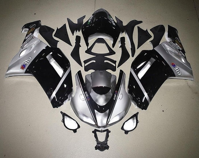 Previous Product Next ProductSilver, Black, Elf Fairing Kit for a 2007, 2008 Kawasaki Ninja ZX-6R 636 motorcycle.