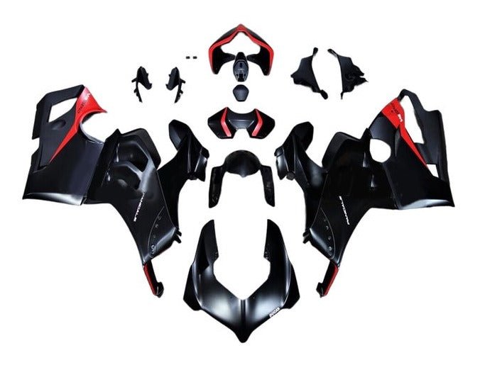 Previous Product Next ProductMatte Black, Red Fairing Kit for a 2020, 2021 Ducati Panigale V4 motorcycle.