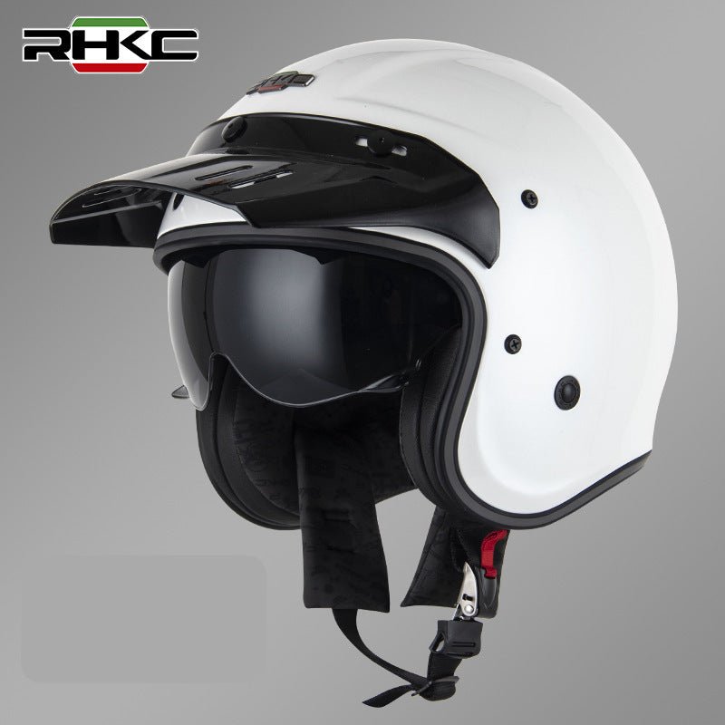 Previous Product Next ProductWhite & Black RHKC Open Face Motorcycle Helmet brought to you by Kings Motorcycle Fairings.