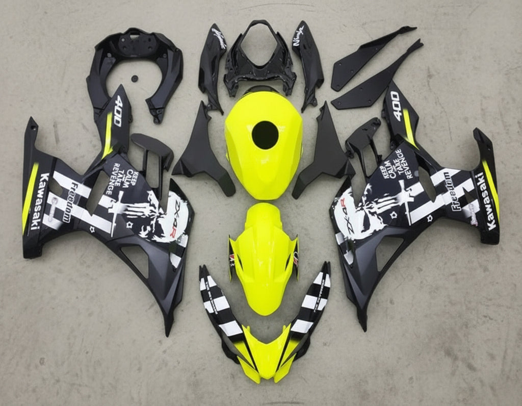 Fairings for Kawasaki Ninja 400 (2018-2023) Yellow, Black, White Skull
