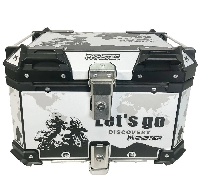 Previous Product Next ProductWhite Monster Aluminum 45 Liter Motorcycle Top Box brought to you by Kings Motorcycle Fairings.