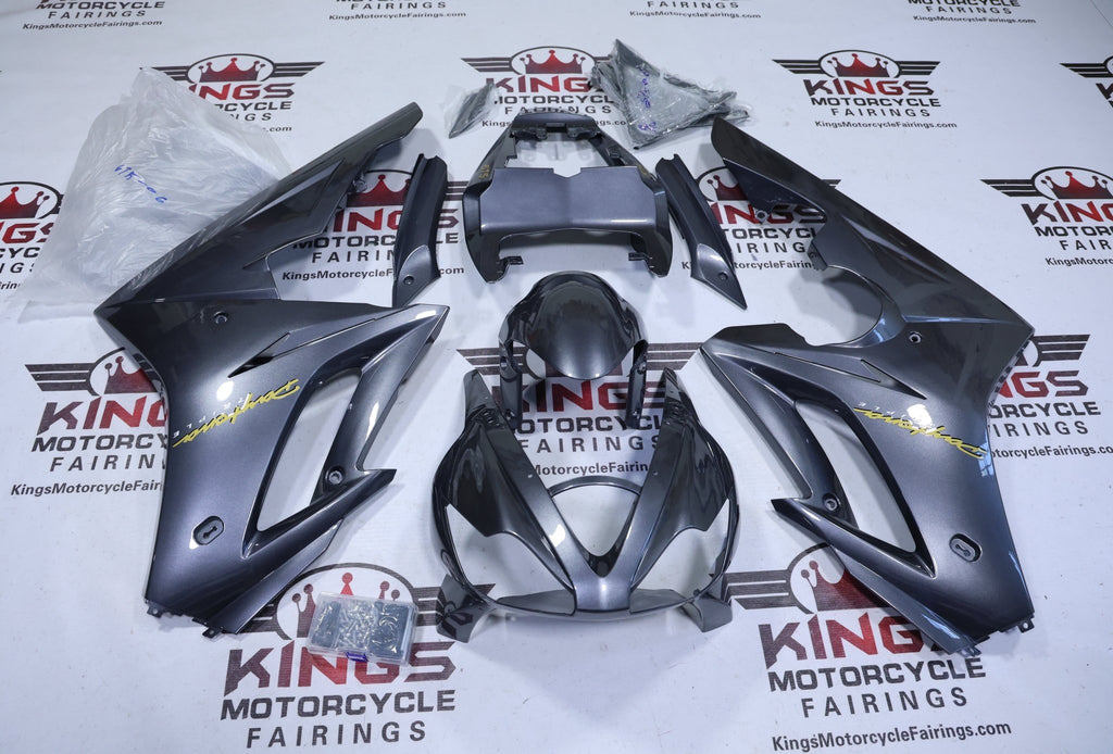 Previous Product Next ProductDark Silver and Gold Fairing Kit for a 2006, 2007, 2008 Triumph Daytona 675 motorcycle.