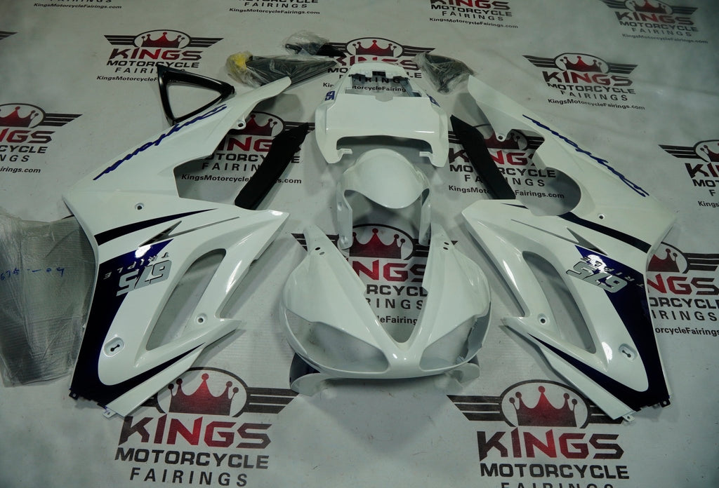 Previous Product Next ProductPearl White, Dark Blue Fairing Kit for a 2009, 2010, 2011, 2012 Triumph Daytona 675 motorcycle.