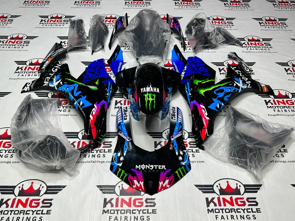 Previous Product Next ProductBlack, Blue Monster Fairing Kit for a 2015, 2016, 2017, 2018 & 2019 Yamaha YZF-R1 motorcycle.