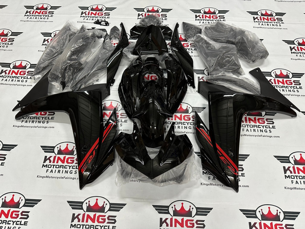 Previous Product Next ProductBlack, Red Stripe Fairing Kit for a Yamaha YZF-R3 2015, 2016, 2017, 2018 motorcycle.