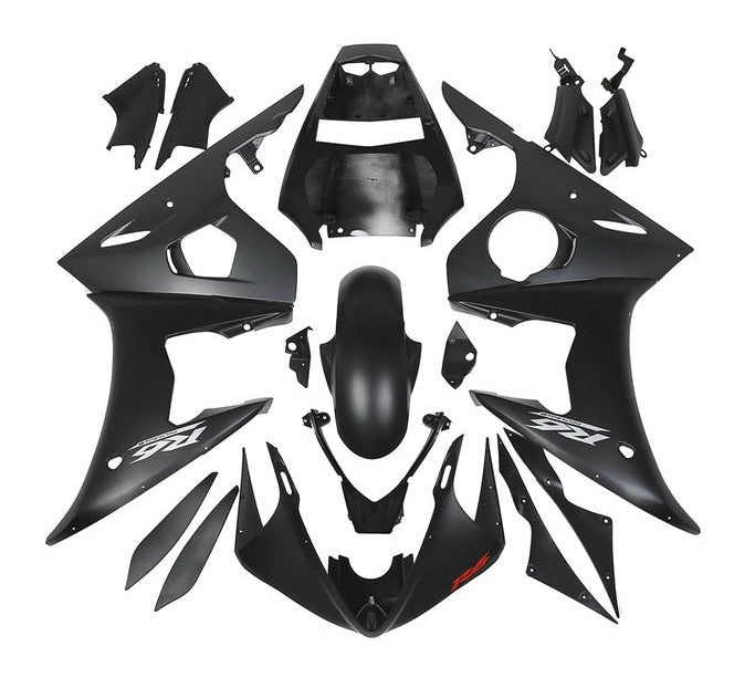 Previous Product Next ProductMatte Black, Silver, Red Fairing Kit for a 2005 Yamaha YZF-R6 motorcycle.