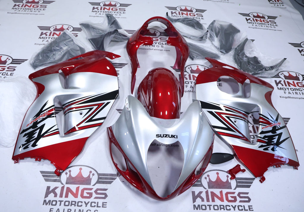 Previous Product Next ProductRed Candy, Silver, Black Fairing Kit for a 1999, 2000, 2001, 2002, 2003, 2004, 2005, 2006, 2007 Suzuki Hayabusa motorcycle.