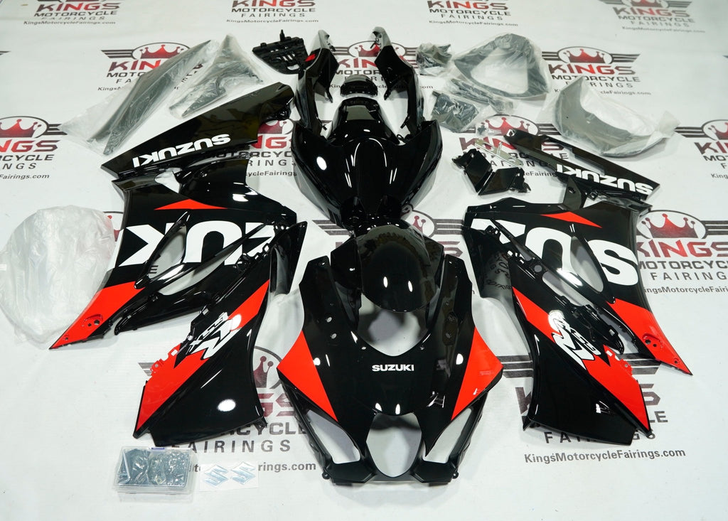 Previous Product Next ProductGloss Black, Red and White Fairing Kit for a 2017, 2018, 2019, 2020, 2021, 2022, 2023, 2024, 2025 Suzuki GSX-R1000 motorcycle.