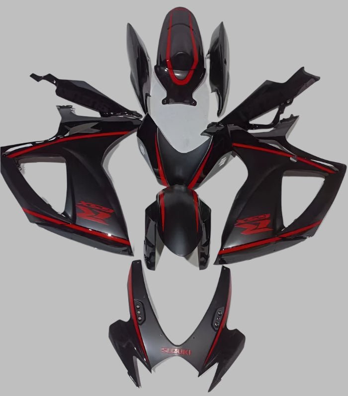 Suzuki GSXR600 (2006-2007) Black, Matte Black, Red Stripe Fairings