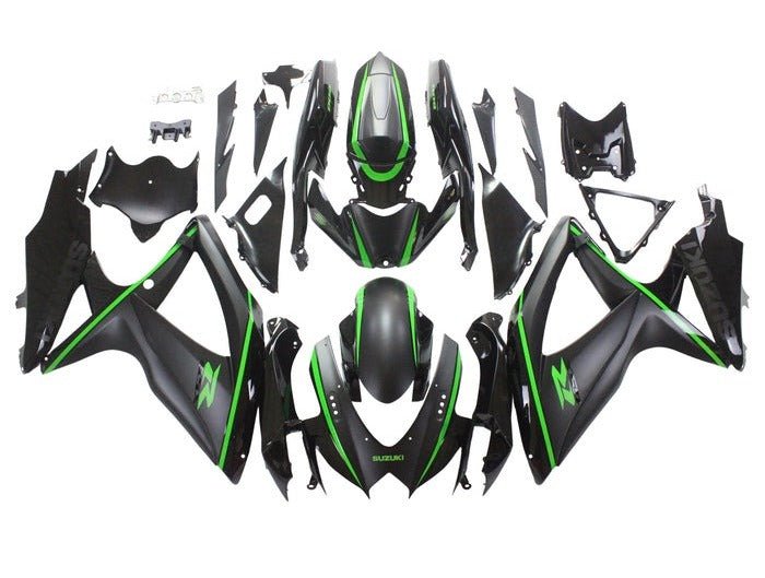 Suzuki GSXR600 (2008-2010) Matte Black, Green Stripes Fairings