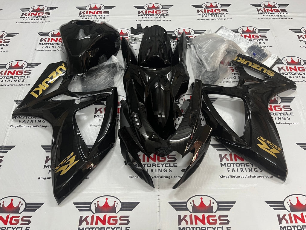Previous Product Next ProductBlack Gloss and Gold Fairing Kit for a 2006, 2007 Suzuki GSXR750 motorcycle.
