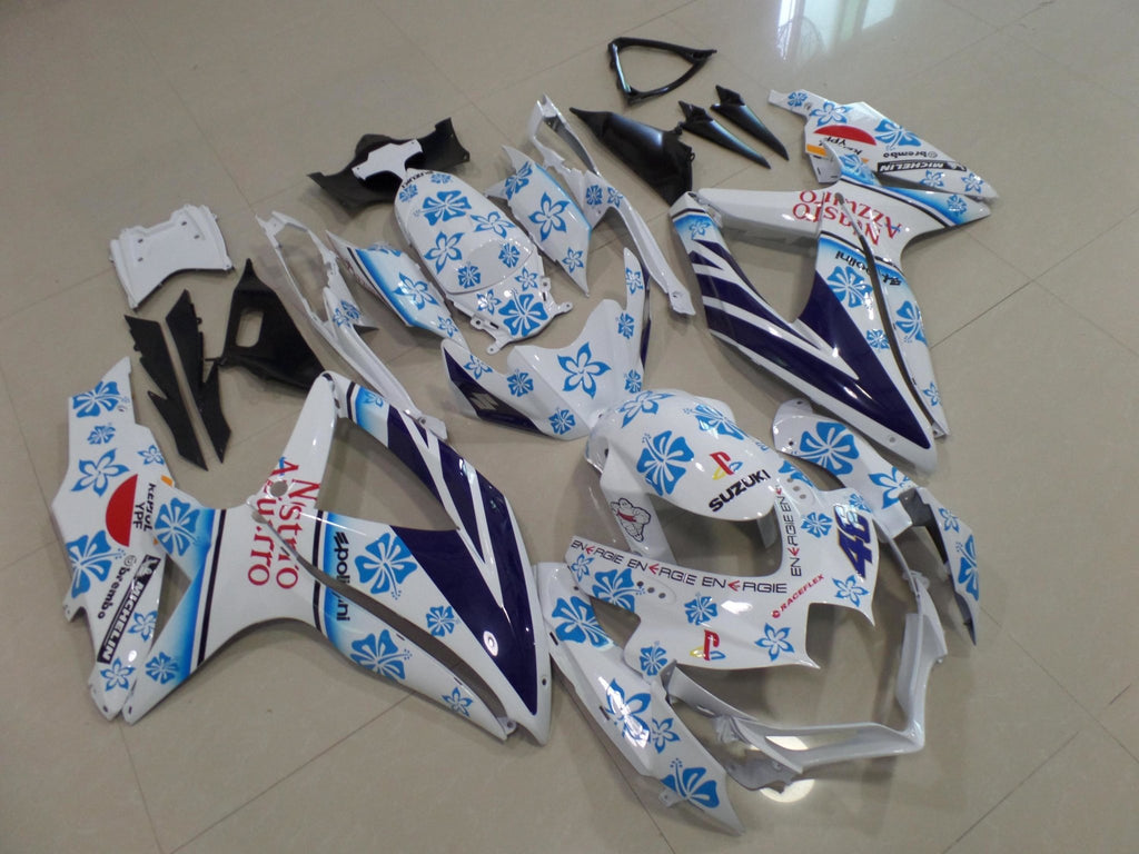 Suzuki GSXR750 (2008-2010) White & Blue Flower Nastro Azurro Fairings