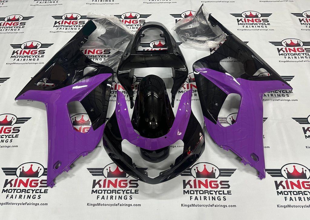 Previous Product Next ProductPurple and Black Fairing Kit for a 2000, 2001, 2002 & 2003 Suzuki GSX-R750 motorcycle.