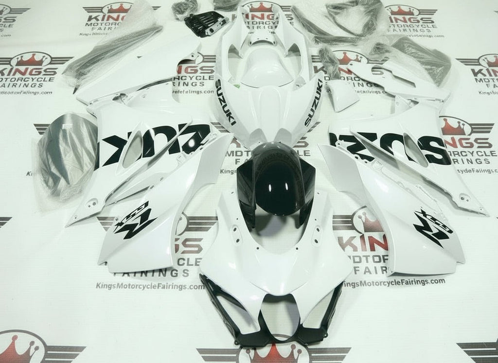 Previous Product Next ProductWhite, Black Fairing Kit for a 2017, 2018, 2019, 2020, 2021, 2022, 2023, 2024, 2025 Suzuki GSXR1000 motorcycle.