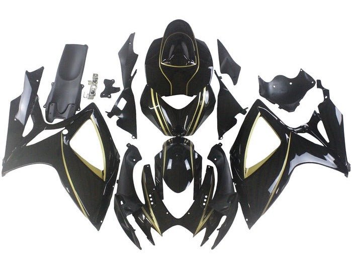 Suzuki GSXR600 (2006-2007) Black, Gold Stripe Fairings