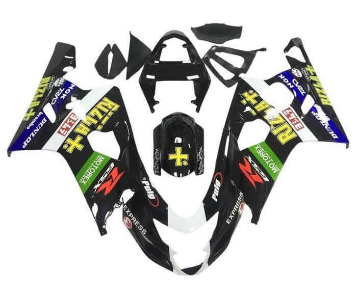 Previous Product Next ProductBlack, Yellow Rizla Fairing Kit for a 2004, 2005 Suzuki GSX-R750 motorcycle.