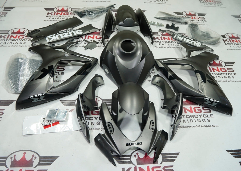 Previous Product Next ProductMatte Gunmetal Gray, Black Fairing Kit for a 2006, 2007 Suzuki GSX-R750 motorcycle.