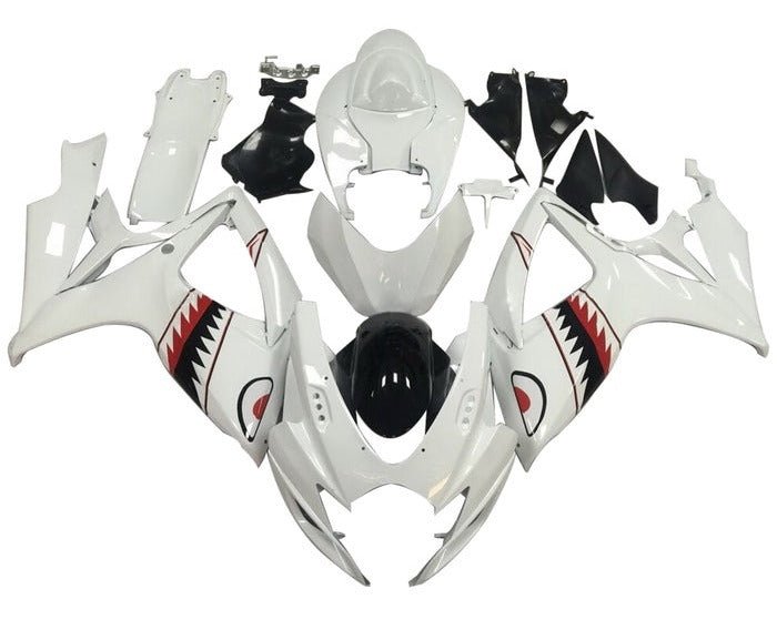 Previous Product Next ProductWhite, Black, Red, Shark Fairing Kit for a 2006 & 2007 Suzuki GSX-R750 motorcycle.