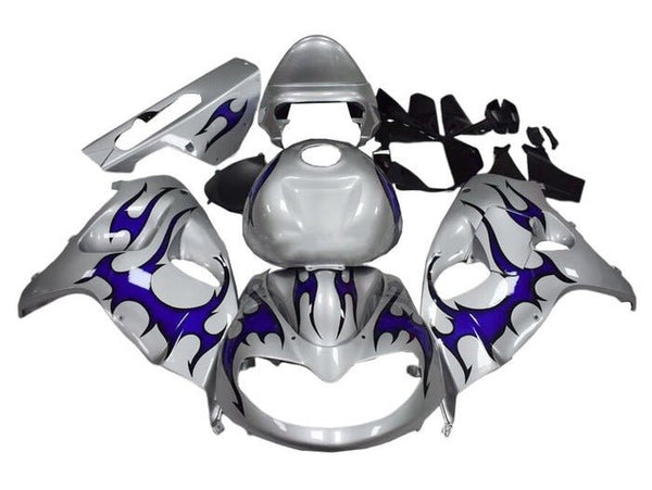 Previous Product Next ProductSilver, Blue Tribal Fairing Kit for a 1998, 1999, 2000, 2001, 2002, 2003 Suzuki TL1000R motorcycle.