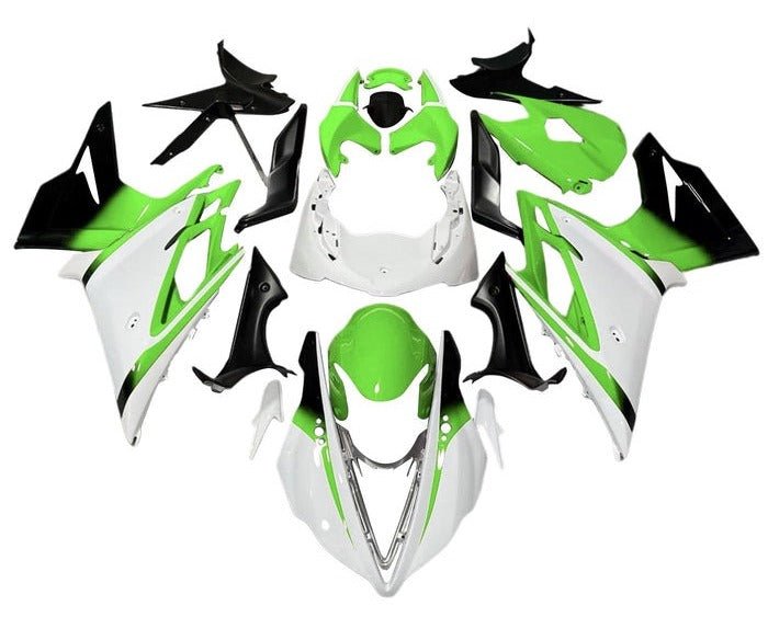 Previous Product Next ProductWhite, Green, Black Fairing Kit for a 2013, 2014, 2015 & 2016 Triumph Daytona 675 motorcycle.