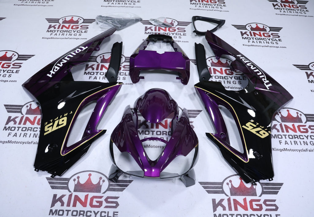 Previous Product Next ProductPurple, Black, Gold Fairing Kit for a 2006, 2007, 2008 Triumph Daytona 675 motorcycle.