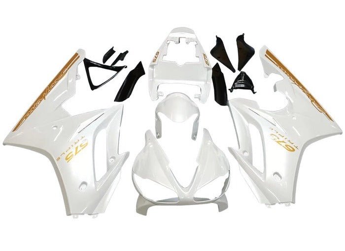 Previous Product Next ProductPearl White, Gold Fairing Kit for a 2009, 2010, 2011, 2012 Triumph Daytona 675 motorcycle.