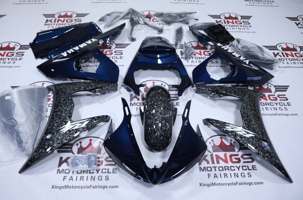Yamaha YZF-R6 (2003-2004) Faux Forged Carbon Fiber, Dark Blue Fairings